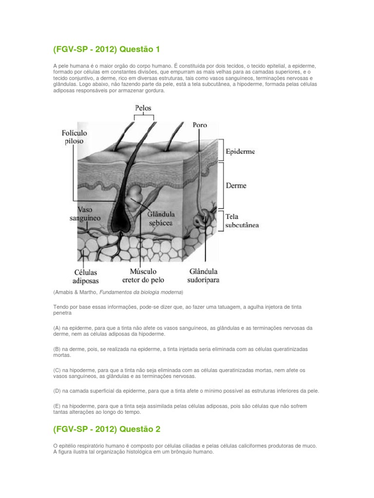 Questoes Uno Histologia Animal Pele Epitelio